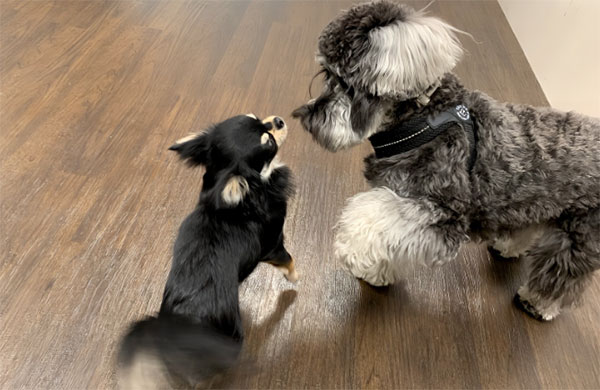 | 12:00 | | プレイタイム&お休み ご愛犬の様子を見ながら、相性のいい子、そうでない子を見させていただきます。 他犬が全く受け入れられない子については、無理に遊ばせようとしたり、他犬の中に入れたりすることはございません。 適度に休憩を挟みながらプレイタイムを楽しみます。 |